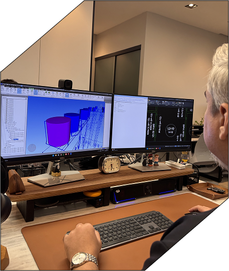 Análise técnica multidisciplinar em modelos digitais, identificando interferências antes do início da obra.